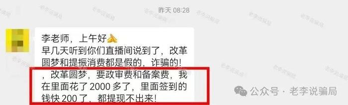 发表时间:2025-11-04 11:43来源:李旭反传防骗团队 近期,各类诈骗项目依旧层出不穷,尤其瞄准中老年人群体。 通过梳理10月份接到的咨询和求助,我们汇总了近200个涉诈项目及APP,将其归纳为五大类别(假冒国家相关部门、假冒知名企业、利用虚拟货币、拆分盘以及假冒智天云数贸)。 请广大读者提高警惕,转发提醒身边人,别让养老钱打水漂!(全文比较长,建议点个收藏慢慢看) 一、假冒国家机关、官方机构类 不法分子利用中老年群体对官方的信任、对互联网的不熟悉,冒用国家机关、政府部门等名义,伪造红头文件,制作涉诈APP,以发放扶贫款、补贴、养老金等为诱饵实施诈骗。 这上百个互联网诈骗项目,是怎么通过境内外勾结忽悠众多中老年?一篇文章讲清楚 1、虚构的“中数汇财”APP 不法分子冒充某部门,打着给“追梦人”发钱的旗号,声称实名注册、每天听课学习即可领取306万亿“功臣”款。 该骗局最开始打着免费的旗号,但近期宣称想提现需要向“儿童慈善基金会”捐助,而捐款的收款账户居然是个人账户。该项目还强迫用户向虚假的“中国儿童基金会”捐款,收款方均为第三方个人。 2、虚构的“中国圆梦”APP 2024年10月,公安部公布第二批50个民族资产解冻诈骗项目名单,“中国圆梦”就在其中。 近期又打着兑现现金的名义,诱导参与者不断交钱,始终没有提现成功过。该项目还冒用国家部门旗号,以“缴纳圆梦金换百万消费金”为诱饵吸引参与者。 ![]() 3、虚构的“提振消费”APP 假借国家某部门名义,声称发放1.2万亿元消费补贴,注册并提供个人信息即可领取各类“消费补贴”,发展下线还可获得团队津贴等奖励。 该APP通过第三方渠道下载,下载提示未备案。 4、虚构的“共创普惠”APP 不法分子冒充某部门名义,宣称提供“普惠金融专项160亿”资金,实名注册可获得“十年500万额度无息贷款”,提供个人信息还可获得2.8万国补资金,发展下线获得更多奖励。 该应用只能通过第三方链接下载,未备案且带病毒,涉嫌非法搜集个人信息和诈骗。 5、虚构的“全球发展”APP 不法分子冒充某部门,宣传实名注册、连续签到即可获得3.3万产品,满3月可领取“民薪补贴”等。 该应用只能通过第三方链接下载,未备案,为诈骗软件。 6、“民生保障”APP 宣称是“国家项目”,注册就送2万元,但网站IP地址在新加坡。 该应用无备案信息,IP地址在境外。 7、虚构的“全民共富”APP 这是由去年被工信部列为虚假涉诈APP的“中国共富”更名而来的,通过“富民共创”APP邀请新人开会,承诺高额回归补贴。 8、“民委扫码签到” 以“监督中*国*梦”“发钱送房”为诱饵,要求用户每日扫码、签到、看广告,提交个人信息作为“领福利依据”,与“终谷扫码签到”套路一致,全是空头承诺。 9、“双循环卡”扫描签到 不法分子冒充某部门,声称参与者提供个人信息,扫描走通道,即可获得两张循环卡,每张有5万现金,可购买银行股权,随后每月可获得10万。 涉嫌非法搜集个人信息、诈骗。 10、虚构的“圆梦统计”APP 国家统计局郑重声明:没有建设“圆梦统计平台”,从未组织过相关活动。请提高警惕,谨防上当受骗。 11、虚构的“扩大内需”APP 9月初,网信办互联网联合辟谣平台公开辟谣,指出有人借“参与国家项目获荣誉证书”进行诈骗,部分涉案人员已被刑事拘留。 ![]() 12、虚构的“南海安居计划(海南计划)”APP 冒充“海南省房屋综合业务中心”,以免费申报房产吸引用户下载,申领不同级别的“海南卡”。虚构推广日收益超过8%的虚假投资理财项目。下载提示未备案且携带病毒。 13、数字人民币推广 假的!不要相信!相关阅读《辟谣!“成立数字人民币银行、招募数字人民币推广员”系谣言》 14、虚构的“惠民政策”APP 冒充国家机关推出所谓的“养老基金”,吸引人们参与,随后推出虚假理财产品承诺高额收益诱导用户认购。前段时间突然将分红提高三倍,忽悠用户大额投入。 前段时间,平台就一直处于系统升级中,疑似跑路在即。 15、虚构的“助残服务”APP 打着国家旗号冒充残联发布虚假投资理财项目,日收益率高达1.5%。 但APP下载提示未备案且携带病毒。 16、冒牌的“上合组织银行”APP 冒用“上海合作组织(SCO)”标识,宣称注册即送200万元,邀请新人再奖10万银行余额。实际不过全是骗子为了套取个人信息画的“大饼”。 17、虚构的“共富工程”APP 18、虚构的“中国数贸CDTT”APP 民族资产解冻类诈骗。不法分子冒充“商务部”名义,制作涉诈APP,虚构推广高额返利理财项目实施诈骗。 网友反馈,该项目谎称“上市”,禁止用户提现,继续投资购买新的理财项目才可以排队提现。 19、虚构的“国清汇”APP 不法分子虚构“国清汇结算中心”机构,制作虚假APP,宣传“国清汇”平台是国家专项清算行动的资产托管平台。每天听课学习可领取6000元结算补贴,连续签到可领取138万元。 网友反馈,最开始打着免费旗号,最近开始推出“款项核销包”等理财项目实施诈骗。 20、虚构的“央行万亿回购”APP 不法分子冒充“央行”名义,制作虚假APP,声称央行开展1万亿元买断式回购,实名注册即可获得188万的回购费用,发展下线可赠送回收现金,还可申请办理银行卡,涉嫌非法搜集个人信息。 21、虚构的“圆梦统计(圆梦钱包)APP” 打着国家旗号,宣称参与者可获得内含大量资金的“圆梦钱包专
