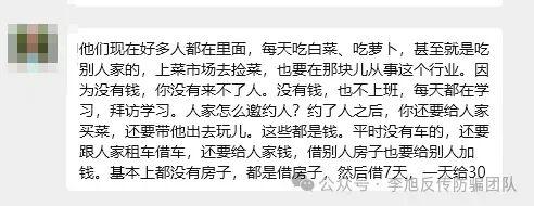 发表时间:2025-11-04 11:53来源:李旭反传防骗团队 2021年,来自辽宁大连的姚女士怀揣着旅游的初心,登上了飞往山东威海的航班。她未曾想过,这场看似普通的旅行,会将她拖入长达两年的传销深渊,让她付出两段婚姻、巨额债务的惨痛代价,直到2025年才彻底走出阴霾。 旅游偶遇:一场精心设计的“邂逅” 抵达威海后,姚女士意外发现朋友圈有位不算熟悉的朋友恰巧也在当地。一番联系后,对方热情邀约她前往威海荣成游玩,荣成尽兴一日后,又顺势提出带她去往荣成石岛。 ![]() 姚女士心中满是疑惑:两人交集不多,对方为何如此殷勤地带自己四处溜达,且全程不见其上班?由于年龄相仿、彼时均为单身,对方言语间满是暧昧,生活上更是体贴入微——车接车送、宴请吃饭、全程陪同游玩。面对“是否耽误工作”的疑问,对方仅轻描淡写回应“最近在休息”;被问及职业时,更是抛出“在做政府国家扶持的项目”的说法,姚女士起初只当是玩笑,并未深究。 温情裹挟:亲情牌下的陷阱铺垫 几天后,姚女士打算返程,却被对方再三挽留:“还没带你玩够,再多留几天”。当晚,对方更是将她带回了家,其父母的热情招待让本就放松警惕的姚女士彻底卸下防备。 姚女士的父母轮番劝说:“山东发展好,别回东北了,东北赚钱机会少,出来闯几年再回去也不迟”,男方母亲:“我挺喜欢你的,我儿子在这边工作挣钱多,你要是能干,留在这儿多好,山东的海多蓝啊”。这番话恰好触动了姚女士——彼时的她早已厌倦了原城市的疲惫与忙碌,对新生活充满向往,便心动地答应“明天去看看你们的工作”。 洗脑攻坚:从怀疑到沦陷的六天 然而,所谓的“工作考察”,实则是一场步步为营的洗脑骗局。第二天起,对方便带着姚女士挨家挨户爬楼梯,接受所谓的“项目介绍”:投入69800元,就能赚到1040万元。如此离谱的数字让姚女士第一反应便是“无稽之谈”,但介绍人却打着“只是帮你朋友看看”的幌子持续游说。 ![]() 姚女士心想“听一个小时也无妨”,却不料被接连带去第二家、第三家。她渐渐生出不耐烦,对方却频频打感情牌:“你就帮我看看,不能这么不负责任”“想在这边发展,肯定要多了解”。就这样,她被裹挟着连续四天“考察”,每天都在不同居民家中重复听着相似的论调。 第五天,一个细节让姚女士心中生出恐惧:这些接待“考察者”的家庭,洗杯子、倒水的手法如出一辙,就连装水的框都是同款。她隐约察觉自己掉入了庞大陷阱,却又自我安慰:“投资六万多,五天见了二十多个人,这么大的网要是骗人,每个人能分到多少钱?”再加上对城市的好奇和一丝“想试试”的责任心,她选择继续了解。 第六天,游说重点转向“人生价值”“对父母的责任”“抓住机会改变命运”。姚女士彻底动摇了,她喜欢威海的环境,渴望换一种生活方式,更觉得自己年轻可以冒险。彼时正处于分居状态的她,果断卖掉老家房子、迅速办理离婚手续,拿着分到的财产,毫不犹豫地投入了69800元。其实她并未真信能赚到1040万元,吸引她的更多是这里看似“有素养”的人际圈——不乏传统行业的老板、老师,而她自己原本也是幼师,这种氛围让刚离婚的她感到舒心,赚钱的欲望反而排在其次。 沉沦深渊:以爱为名的“拉人入局” 真正的沉沦从“邀约人”开始。按照传销组织“五级三晋制”(业务员、组长、主任、经理、老总)的要求,她需要发展三名下线。起初,姚女士信心满满,邀约了第一位女性朋友,可朋友一来便察觉异常,直言“一个老百姓怎么可能接触到国家扶持的项目”,当场就要报警并把她带走。 当时的姚女士非但不领情,还觉得朋友不理解自己,心中满是委屈。这次失败让她不愿再找熟人,而传销组织则支了新招:“你单身,可以在相亲网上聊陌生人,用恋爱关系让他们信任你”,还举例“之前有个女孩这么做,现在每月能拿十几万工资,传递信息也是为别人好”。被洗脑的姚女士信以为真,觉得既然已经投资,就该按“规则”走下去。 她通过相亲网邀约了第一个男性“下线”,对方对她颇有好感、甚至有结婚打算,如同当初的她一样,经过几天“考察”后投入了六万多元。可没过多久,对方家人察觉异常,将他强行带走并报警。当对方想要回投资款时,才发现传销组织既无记账,也无任何转让凭证。姚女士满心愧疚却无能为力,而传销组织却告知:“他想拿回钱,就得再拉一个人进来转让份额,直接报警就会被踢出去,一分钱也拿不到。”尽管心中焦虑,但每当她有动摇迹象,就会有人围着她聊天、游玩、洗脑,让她无法抽身,只能硬着头皮继续。 婚姻捆绑:绝境中的无奈抉择 在错误道路上,姚女士又结识了一位男性“下线”,对方投入六万多元后,陆续将母亲、父亲、弟弟带入坑中,整个家族都投入了大量资金。此时的姚女士已做到300份大经理级别,眼看就要“上总”,即将迎来所谓“每月10万元工资”的新平台。 可一个现实让她猛然惊醒:一位女性朋友的母亲早已“上总”,却依然靠刷信用卡维持生计。姚女士终于意识到这是彻头彻尾的骗局,想要停止却为时已晚。她与那位已奔着结婚去的男性“下线”摊牌,可对方早已深陷其中不愿回头,坚持要与她结婚。 姚女士陷入两难:不结婚,对方全家会向她追讨投资款,而她根本无力偿还;结婚成了唯一的“自保”办法。然而,这段建立在传销骗局上的婚姻注定无法长久。婚后,姚女士