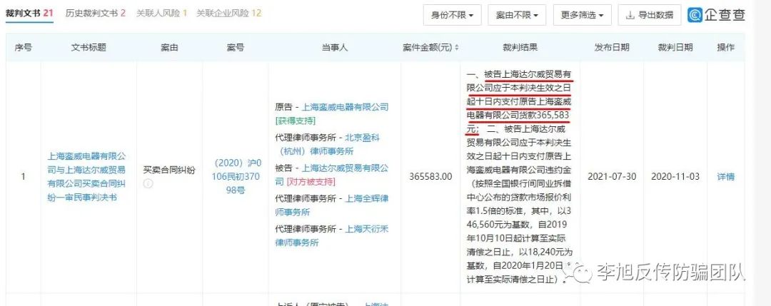 这抵用券为商家自己发放的,两人利用抵用券存在的漏洞“薅了羊毛”,导致公司遭遇损失,却转过头被说成合同诈骗?对此,网友们也是众说纷纭。 “怎么判也不会超过因重大误解造成不当得利。本来就是民事纠纷,说是诈骗也有点搞笑。” “作为用户,怎么样才知道是企业设置错了呢?难道企业说设置错了就是设置错了?那万一企业就是故意这么设置想要引流新客的呢,年终总结发现引流新客效果不好就说设置错了找消费者背锅?哪有这样的道理…” “自己出的漏洞,被别人正常使用,结果反而被抓了” “应该两头罚,不能公司自己的失误,完全怪到消费者头上当然这次只抓这两个,是他们确实存在恶意。但像之前网店那种,自己设置错价格,然后不发货,还到处发可怜文章卖乖的,那种就不行。” 也有网友表示 “我也喜欢薅羊毛,摸着良心说,以到APP取消订单,然后去支付宝复活订单重复使用优惠券这个行为已经不是正常操作了,不是正常操作那问题定性就不归各位的“道理”管了。 多少是有点不正当了,薅羊毛归薅羊毛,还是得有底线” “利用支付时间差的系统bug刷单,这应该构成不当得利。” 对此,你怎么看呢? 此外,李旭反传销团队注意到,TST庭秘密除了把代理送进监狱外,还因拖欠供货商货款36万遭起诉。 企查查显示,上海銮威电器有限公司(以下简称“銮威电器”)与上海达尔威贸易有限公司(以下简称“达尔威贸易”)买卖合同纠纷二审民事判决书公开,判决结果为“驳回上诉,维持原判”。判决达尔威公司应于本判决生效之日起十日内支付原告銮威公司货款365583元并支付相应违约金。