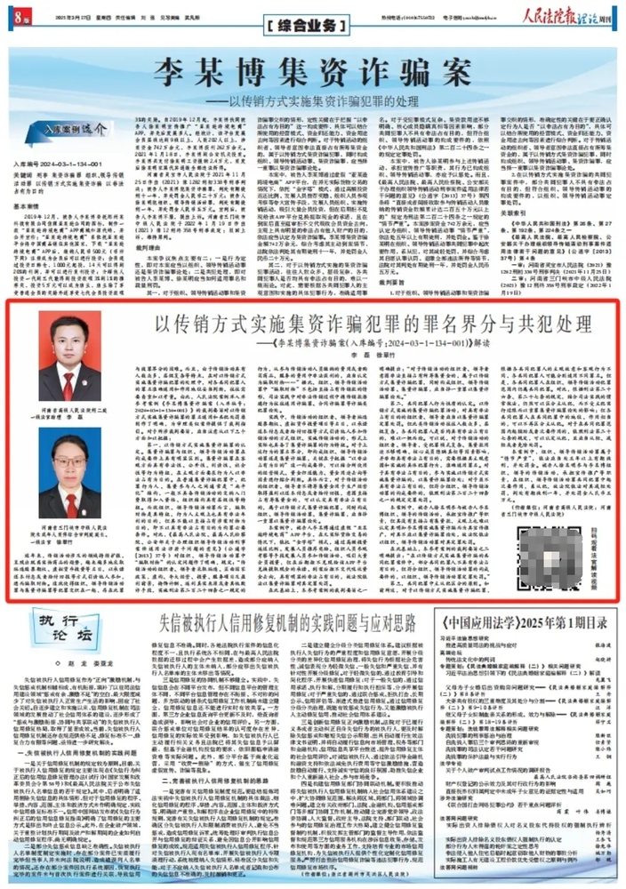 以传销方式实施集资诈骗犯罪的罪名界分与共犯处理 ——《李某博集资诈骗案(入库编号:2024-03-1-134-001)》解读