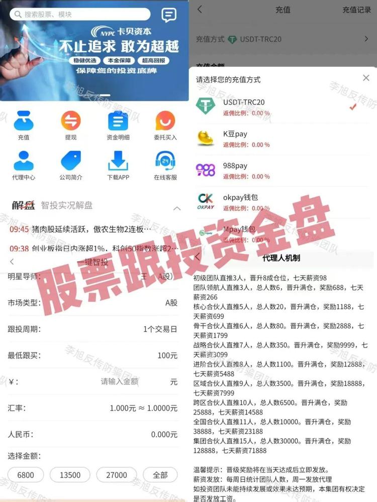 发表时间:2025-08-28 11:35来源:李旭反传防骗团队 “警察为什么不帮我把钱要回来?” “骗子为什么就抓不到?” “普通人怎么避免被骗钱?” 这三个问题一直是网友们最为关注的话题。2025年8月,公安部针对这些问题进行了十分详细的解析。我们先一起来看一看。 相关阅读《为什么警察不帮我把被骗的钱追回来?公安统一回复》 也正是因为这样,骗子们有恃无恐的利用各种伪装,不断掩盖诈骗行为。 我们甚至可以发现,在一个盘子跑路之后没多久,骗子就可以简单动动手指,连IP都懒得更换,随便套用一个框架程序,改个名字就重新起盘。这一行径,在“香港联某某”股票跟投项目崩盘时,小编就曾详细分析过。 相关阅读《股票跟投热潮下的暗流——当心“泰某宝”“新某众”等高回报诱惑背后的金融骗局》 然而这段时间,我们又发现多个已经关网或被定性的项目又玩起了老把戏。更名换姓重启新盘继续骗人。作为普通老百姓,我们确实没有高超的技术和充足的资源做到精准识别。但是,有一点连小孩子都能知道:“陌生人突然递来的棒棒糖不能吃!” 资金盘 1、“卡贝资本” 声称来自美国华尔街的知名投资机构。用户通过链上充值进行股票跟投。 但该应用只能提供第三方链接下载,下载提示未备案且携带病毒。 ![]() 在查询项目IP地址时,我们还发现“卡贝资本”的IP与另外几个我们曾多次提及且同样风险极高的股票跟投项目一模一样。很有可能出自同一批人之手。不过是换了一波韭菜继续割而已。 ![]() (图片来自“黑白之猫微信公众号”) 虚拟币相关风险项目 1、“GEC环保币” 冒充“世界环保创业基金会”推出区块链项目,以环境保护为名,引诱参与者注册投资,购买矿机挖GEC环保币,通过增值获得高额回报。 该项目只能通过第三方链接下载,下载提示未备案且携带病毒。 ![]() 早在2022年5月21日,自贡公安就曾表示“GEC环保币为传销骗局”。 相关阅读《“GEC环保币”不要碰!》 ![]() 多名高层更是因组织领导传销罪被打击。 ![]() 但去年,阜阳的王总、杨总再次重新开盘继续忽悠。还望广大群众擦亮眼睛,切莫上当! 2、Fire Fly 萤火协议 设置活期、定期静态收益和团队奖励。利润以代币FF结算。 直推收益10%,还按小区算力、定期质押时长、小区质押额划分不同比例的奖励;另有10%“生态基金”,称360天后“每天2倍返还”。 这类模式既无实体盈利,也无市场交易支撑,全靠新投入资金填旧账。看似“灵活提现”,不过是早入场的人暂时拿走晚入场者的钱。一旦新钱断流,所有“收益”都会变成一串数字。 同时又因参与虚拟币交易,资金不受法律保护,维权困难极大。参与者极可能血本无归。别被短期诱惑套牢,远离资金游戏。 ![]() 虚假投资理财 1、Hamiltion Lan(汉某资本)APP 就在8月15日,小编刚刚爆出“先锋领航”APP崩盘跑路的消息。 但仅隔数日,参与者便表示,同一拨团队于近日更名“Hamiltion Lan”再次开盘。新项目无论是页面风格还是玩法模式,与“先锋领航”几乎一模一样。 ![]() ![]() 2、DEIFA 打着“数字化转型”旗号推出多款虚假投资理财项目。用户通过USDT链上充值进行投资,承诺保本高额收益,但实际并无真实盈利支撑,完全依赖新人投资款支付旧人收益。 ![]() 因此,为了刺激用户拉新,平台设置多种奖励机制。同时根据推荐人数量和个人投资总额划分6个VIP等级获得利润加成、三代收益分红等等。只要完成推荐任务,就能解锁全球分红、直推分红等更多种奖励。 为了保证拉新活跃度,无论哪个级别都必须完成每月推荐任务,否则就会降级。 ![]() 种种政策无非就是为了保证有源源不断的新人涌入,一旦没有新的投资款进入,就是此盘关网之时。 民族资产解冻类诈骗 1、套牌的“慈善联盟”APP 这个项目存在至今还有人相信,小编也着实佩服! 参与者口口声声所谓的“国家平台”“国家支持”,好似多么相信“国家”。但面对“央妈”的点名却选择了无视! 相关阅读《存50多万,几个月返利竟超170万?这个 “红头文件”上的“慈善项目”,假的!》 ![]() 连中国慈善联合会副会长兼秘书长都明确指出:“从来没有开展过捐赠获利的项目。”完全是不法分子打着中国慈善联合会旗号的诈骗项目。但各位参与者却仍旧执迷不悟,疯狂拉人,甚至教唆新人“买房也要参与”! ![]() 原本在如此明显的证据面前,骗子都低调了几个月,却不曾想各位“信徒”愣是“不离不弃”,无形中助长了骗子嚣张的气焰。 果然有句话说得好“骗子能骗多久,是由傻子决定的。” 可话说回来,如此搭上身家性命给骗子送钱,最终的结局,您真的承担得起么? 2、虚构的“智天资本”APP 打着“智天”旗号推出涉诈APP。 用户缴纳300元可激活数字股权功能,推出三款售价在999元—9999元的资产包理财项目,根据返利周期获得高额收益和股权。推荐新人享推广权益、全球分工等等。 相关阅读《AI制作“假邓智天”忽悠数十万中老年,这些“智天”诈骗项目你知道几个?》 ![]() 网络传销诈骗 1、看某帮 用户通过缴纳99-198元费用成为会员。每日通过看播模块完成相应任务获得金币,累计提现。通过邀请新人可降低提现手续费。同时,每发展一名新用户都可获得直推、间推奖励。达到相应人数成为经纪人额外享受团队奖励、流水奖励。 该项目模式与早年以“组织领导传销罪”被打击的“直播看客”十分相似